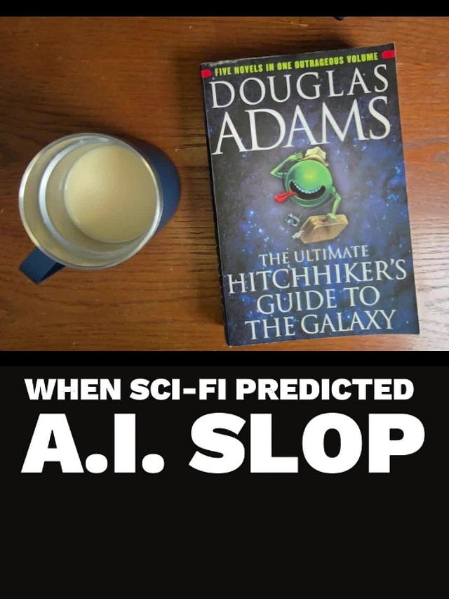 I didn’t quite nail my point in the vid, but the scenario was also on my mind when I made this tiktok a few months ago about AI and The Hitchhiker’s Guide to the Galaxy. In this story, Arthur Dent, a human aboard a spaceship, becomes so nostalgic for a cup of tea from Earth that he accidentally overloads the ship’s computer with making tea. Suddenly the ship’s only priority is to make tea (which is almost, but not quite, entirely impossible), and it becomes a serious emergency when an enemy Vogon ship attacks. The ship’s sole job is to making tea now — not keeping its passengers alive and breathing.